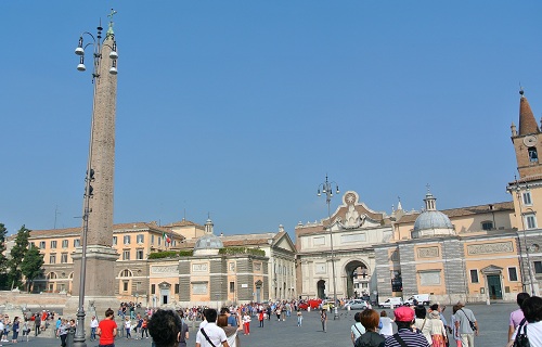 この門からローマに入ると、最初に目に入るのがこんな景色。正面の柱を挟んで左右対称な景色に、昔の旅人は感動する仕組みだったらしいです(´`)