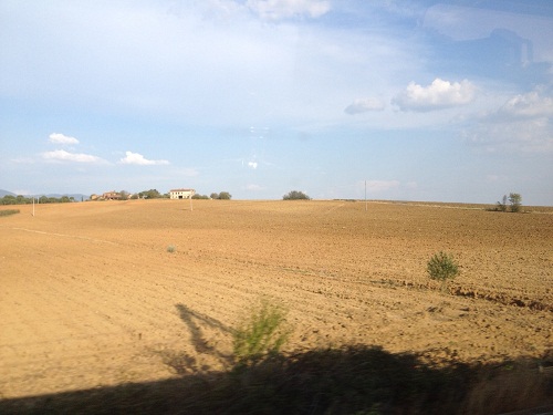 ブドウやオリーブ畑ののどかな景色を眺めつつ、フィレンツェまでの1時間半をうとうとしながらすごす一同。途中、飲み物とお菓子のサービスがありました。