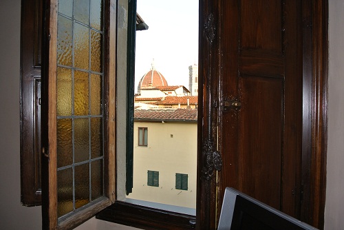 アンティーク調の部屋の窓から見えるのは、フィレンツェのシンボル、ドゥオモです。