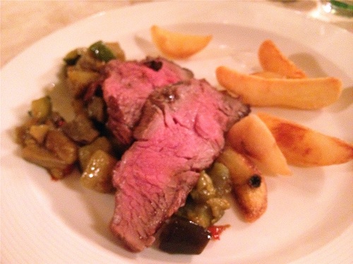 メインはフィレンツェ名物の、ビステッカ・アッラ・フィオレンティーナ。大きな塊を目の前で切り分けてくれました。