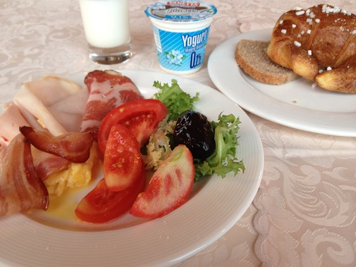 普段は牛乳単品で飲まないんですが、旅行中の体調管理のために牛乳と脂肪分ゼロっぽいヨーグルトを。