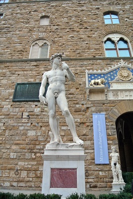 本物は近くのアカデミア美術館にあるようです。写真からは分かりにくいですが、めっちゃデカイ!! 台座だけでも私の身長の遥か上です。