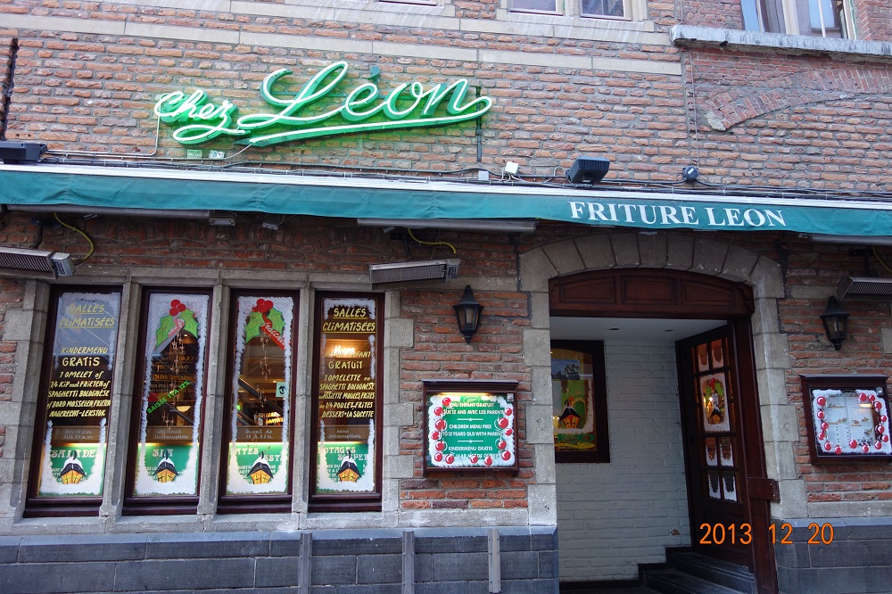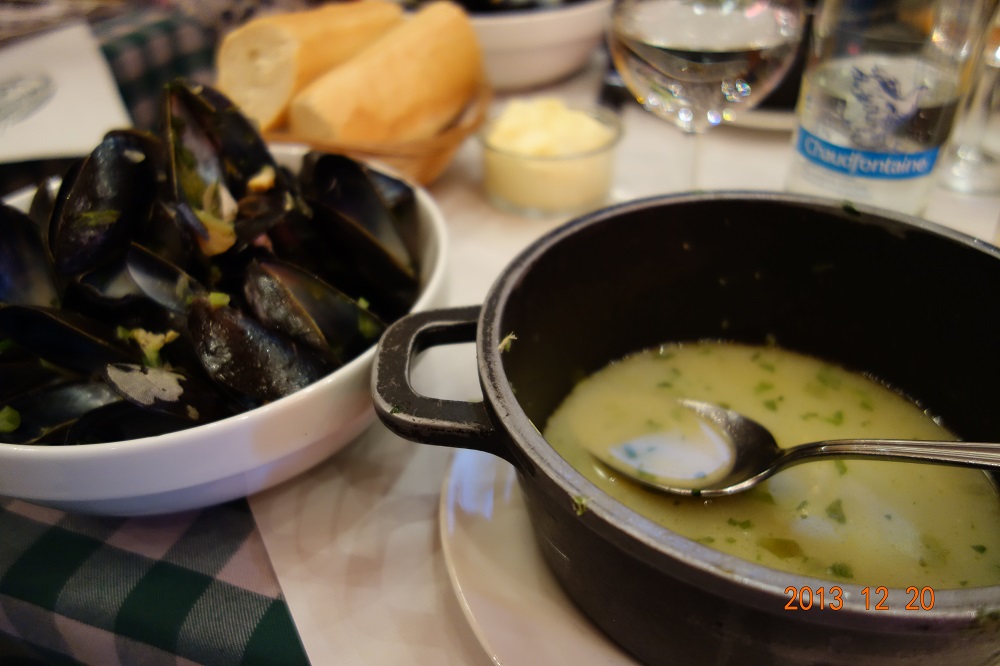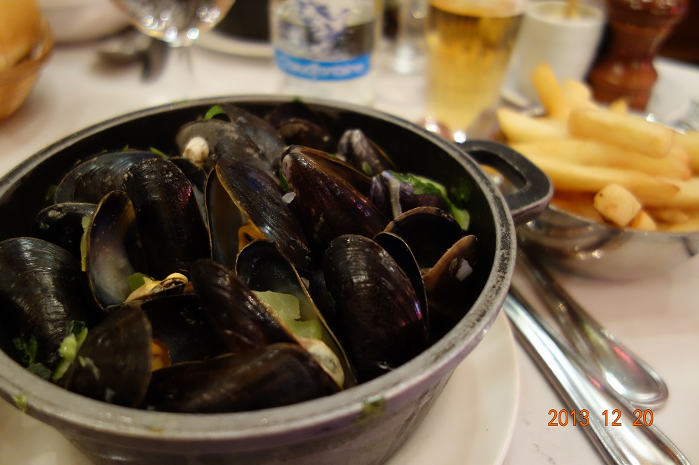 どのガイドブックにも載ってる「シェ・レオン」へ。ムール貝のお店です。