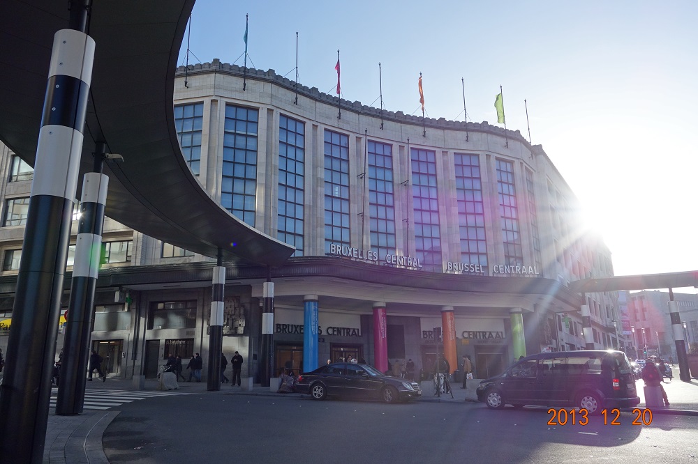 「BRUXELLES CENTRAL」「BRUSSEL CENTRAAL」って駅名が併記してあるのは、ここベルギーの公用語がオランダ語とフランス語の2つだから。
