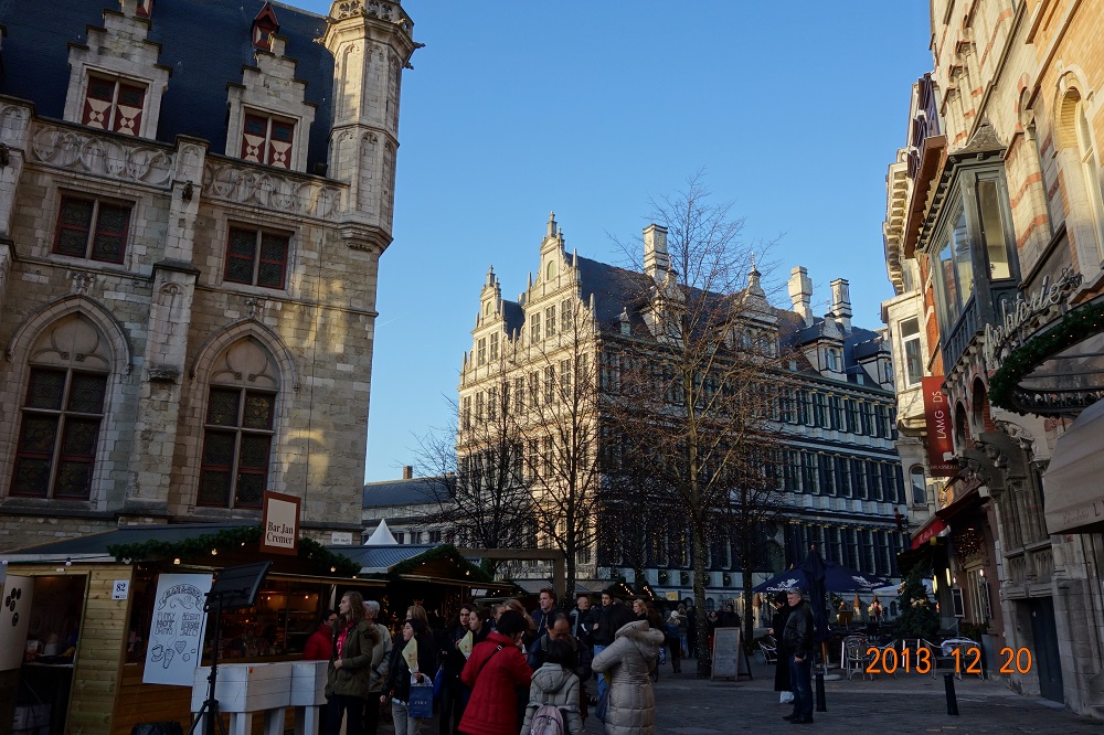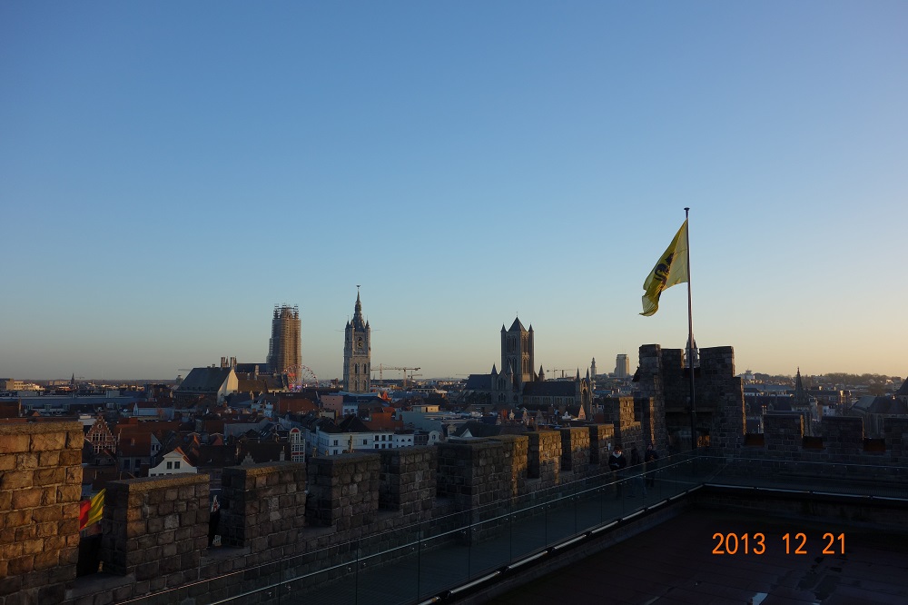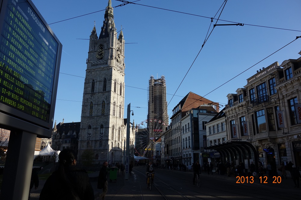 中央左の搭は鐘楼。中央のは聖バーフ大聖堂。工事中なのかな・・・。
