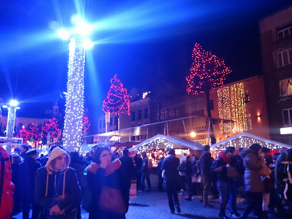 なんか見づらいですがライトアップされたサン・ファレルド広場。
