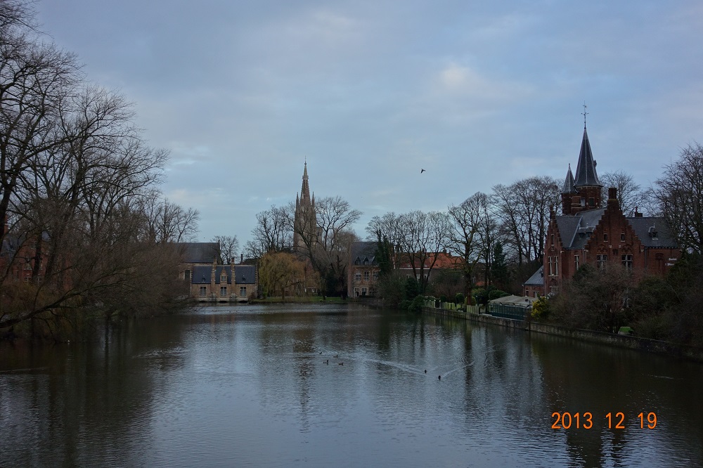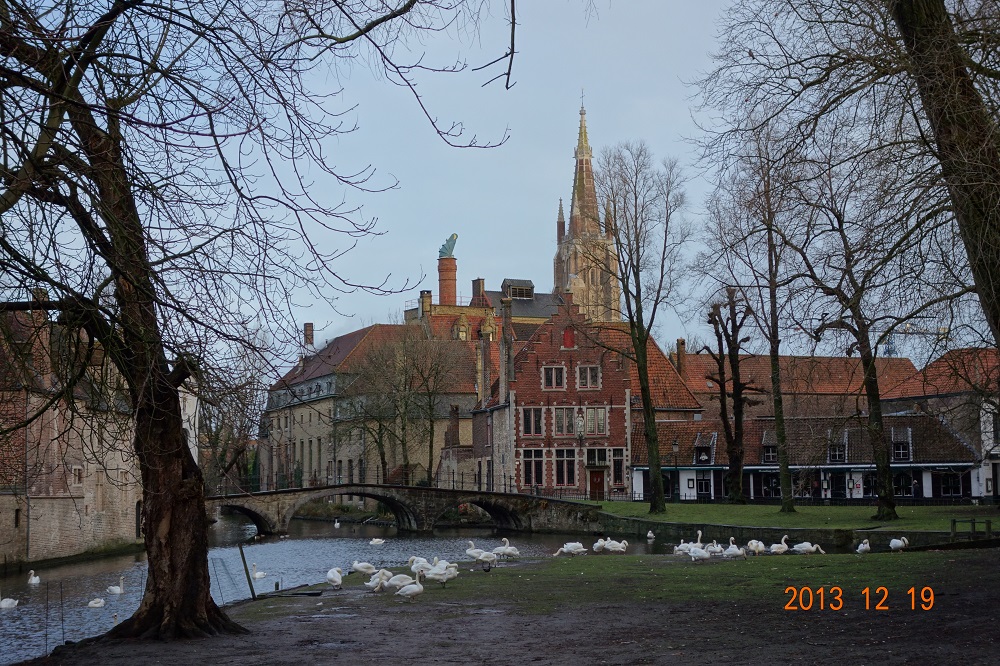 駅前の大通りを渡ってすぐ近く、愛の湖(Minnewater)にかかる橋の上から。